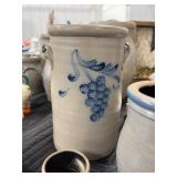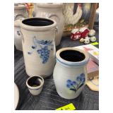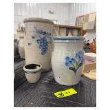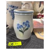 Stoneware Candle Holder (Rowe Pottery Works), Stoneware Crock W/Blue and Green Floral Design (Rowe P |