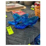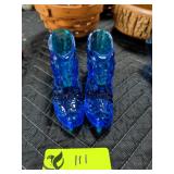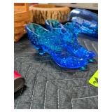 Blue Hobnail Cat Head Slipper Shoes Fenton Glassware |