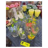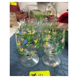 Hand painted floral pitcher and glasses |