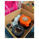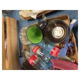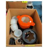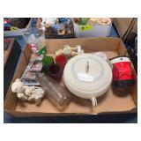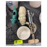 Misc kitchen items and decorative teapot |