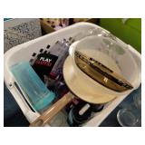 Kitchen items, blue basket, and more |