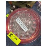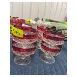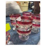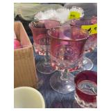 China set, and pink etched stemmed glasses |