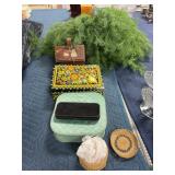 Recipe box, artificial greenery, and jewelry style boxes |