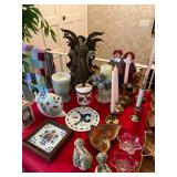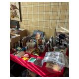 Vintage wooden horses Radio flyer row-cart Gardening items Beach chairs VHS/DVDs Sears Craftsman Outdoor patio furniture Plants Outdoor decor Weber bbq grill Ladders Washer & dryer Wood/glass top coffee table Books Artwork TV Cabinets Armchairs Lamps Blue sofa Dolls Clocks Vintage wooden desk Baskets End tables Swivel wooden bar stools Accent chairs Curio cabinet Decanters Stemware Dining table with chairs Trinkets Milk glass chandelier Hanging Oval wooden stained glass General Electric white refrigerator Mugs Everyday drinking glasses Small kitchen appliance Cooking pans Long. Wooden table with 6 chairs Curio cabinet Tin can Fine China Metlox Vernon Ware made in California Magazine rack Speakers Electronics Wooden plates Vintage Quilts Linens Vacuum, Holiday decor Antique armoire Clothing Bedding Roll top desk Bedroom furniture Costume jewelry Sewing table