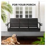 VINGLI Heavy Duty 1600 LBS HDPE Porch Swing Outdoor with Rotatable Cup Holder, 5 FT Patio Bench Swing with Adjustable Chains, 3 Person Hanging Porch Swing Chair for Porch, Yard, Tree, Garden - Black