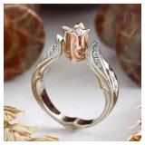 Koguxuix Rose Flower Rings Rose Gold and Silver Two-Tone Shiny Cubic Zirconia Crystal Flower Rings for Women (7)