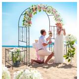 VINGLI 78W x 86.2H Arch Top Steel Garden Arbor With Plant Box for Wedding Ceremony Party Garden Trellis for Plant Climbing Christmas Decorations Pergola for Backyard Black