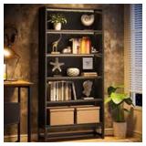 The tall library bookshelf is made of thick particleboard and a heavy-duty powder-coated metal frame, making it suitable for storing large books, dictionaries, and models. Each of the 5-shelves is equipped with an APP-controlled LED light strip. The bookshelf has an anti-dumping kit for stability and adjustable feet for uneven floors. It can be placed in various rooms and used as a bookcase or display shelf.