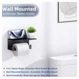 Highly functional strong paper towel holder, bonus multipurpose storage shelf! Large enough to securely hold various items on, e.g. mobile phone, Bluetooth speaker, or other small electronic products. Also for wet wipes, wipe container, facial tissue, liquid soap, air freshener, little books or other stuff, when you use the toilet or take a bath, keeping them tidy, handy in roomy or small bathrooms.