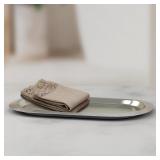 Multi-functional, accent trays can be used in any room. Put them on an entryway table to hold other decorative items or things like keys, use them on the vanity of your powder room to hold soaps or perfumes and such, or use them on a coffee table to hold remotes or serve drinks. Their use is endless. This one, for example, is perfect for a glamorous aesthetic. Crafted from metal in an oval shape with a metallic matte silver finish.