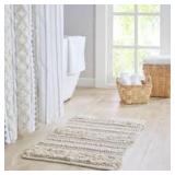 Globally inspired with an artisan touch, the Asher woven textured stripe bath rug is the perfect update to refresh your bathroom decor. This hand-woven bath rug combines beautiful patterns, shaggy textures, and fabric techniques in a vertical stripe layout, for a stylish boho look and feel. The shaggy woven texture is featured in a solid light hue, which alternates between a geo pattern and fabric manipulation technique to create soft dimension and a unique design. Machine washable for easy care; this rug is also finished with a non-skid resistance latex backing to help keep the rug in place throughout the day. Complete the look of this new bath rug collection with any of our coordinating shower curtain, bedding, and window collections, available and sold separately.