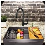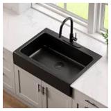 AKDY All-in-One Matte Black Finished Stainless Steel 33 in. x 22 in. Farmhouse Apron Mount Kitchen Sink with Faucet
