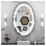 24 in. W x 36 in. H Large Oval Framed Anti-Fog 3-Color Dimmable LED Wall Mount Bathroom Vanity Mirror in Black