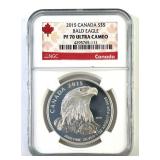 2015 Canada $5 Bald Eagle 1 oz .9999 Fine Silver Round NGC PF70 |