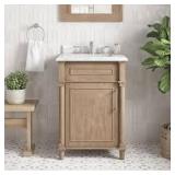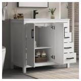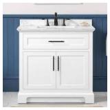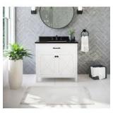 36 in W x 22 in D x 34.5 in H single sink vanity with top Includes backsplash, black hardware, 1-tilt-drawer, 1-shelf Frame crafted from solid wood and plywood for lasting strength