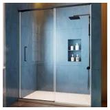 Wynnt 57-60 in. W x 75 in. H Semi-Frameless Sliding Shower Door in Black with Soft-Closing 5/16 in. Clear Glass Shower Door