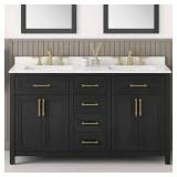 Home Decorators Collection Beaufort 60 in. Double Sink Black Bath Vanity with White Engineered Stone Top (Assembled)