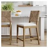 Nathan James Beacon 24 in. Bohemian Boucle Upholstered Wood Counter Height Bar Stool w/ Woven Back, Cream Boucle/Light Brown,Set of 2