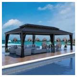 (258). VEIKOUS 24 ft. W x 14 ft. D Aluminum Hardtop Gazebo with Galvanized Double Roof and Textilene Netting