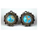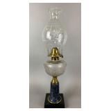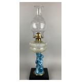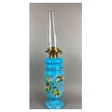 Antique Blue Hand Painted Floral Motif Oil Lamp |