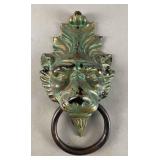 Vintage Patinated Brass Lion Head Door Knocker |