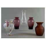 Group of Antique Floral Etched Glass Lamp Shades |