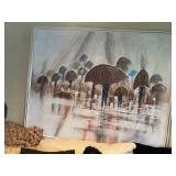 Standard Hardman Peck & Co Baby Grand Piano, Sofa, Rugs, Vintage French-style dining table featuring a decorative cast iron base with a marble top, MCM Thomasville Corner Desk and Dresser Bedroom Set, Vintage Cobalt Blue Porcelain Vase, Chairs, Fine Parisian Cusion Mirror 3'x5', Clothing, Shoes, Purses, French Provincial Dressers, Beds, Night Stands, Chairs, Aynsley English Bone China Gold Rim Set, China, Washer, Dryer, Refrigerator, Outdoor Patio Furniture, Woodard Rocking Chair, Vintage "sun" paper-mâché wall sculpture 1970, Vintage Lounge Chrome Chair, TV, Bakers Rack, Vintage glassware, Pots, Pans and sooooo much more. come back week of sale for updated pictures and more info. Mario De Ferrante Rain Umbrellas Expressionist Art Oil Painting Rainy DayDescriptionDescription:This estate sale has a Mario De Ferrante Rain Umbrellas Expressionist Art Oil PaintingArtist:Mario DeFerrante was born in Naples, Italy on Nov. 29, 1898. DeFerrante studied at the Istituto delle Belle Arti in Naples and served a two-year apprenticeship with Antonio Mancini. After immigrating to the U.S. in 1922, he worked in New York City doing portraits and murals until 1935 when he moved to southern California. After settling in Glendale, he taught at Barnsdale College during 1970-84. His early paintings are representational and later ones abstract. The 5th Jewish Culture Festival in Krakow, held in 1995, was a pivotal early edition of the now-renowned annual event, showcasing a poster designed by Janusz Dresinski. During this period, the festival, founded in 1988, was evolving from a local initiative into a major international event highlighting Ashkenazi, Mizrahi, and Israeli culture.