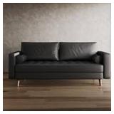 This sofa easily accommodates three people and has a classic design that combines a mid-century feel with contemporary style. The frame is constructed using solid and engineered wood frames to ensure a reliable foundation, while the foam-filled cushions and extra-wide square armrests make this sofa the ideal place to read, relax or even take a nap. High-quality elastic springs configured under the seat cushions help to improve the sofa's resilience and support. Additionally, the sofa comes with two cotton-filled pillows that add extra texture to your space.