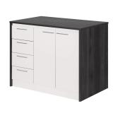 - Concealed storage behind doors and drawers keeps clutter out of sight