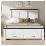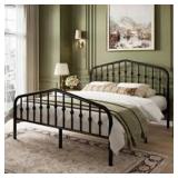 Farmhouse flair. This platform bed showcases vintage-inspired spindle accents and clean lines for a cozy, clean-lined look in your bedroom. The simple frame is crafted from metal with a matte black finish for a versatile design that complements a variety of color palettes. Both the headboard and footboard feature an arched silhouette that keeps pillows and blankets in place. This bed frame has center legs that provide additional support. We also love that the slat system does not require a box spring. Plus, it comes with a little over a foot of clearance space underneath for boxes, bins, and other items you'd like to store away.