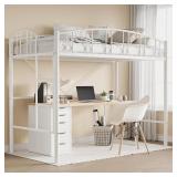 【Safety Assurance】Equipped with a 15-inch high arched guardrail on the top bunk, this loft bed ensures enhanced structural stability and prevents accidental falls. The sturdy anti-tip brackets securely anchor the bed to the wall, providing extra safety for your peace of mind. Important: For optimal safety, the mattress height should be at least 5 inches below the guardrail【Durable and Sturdy Construction】This loft bed is made from a heavy-duty metal frame with tight metal slats and features a V-shaped back support for added stability. Every component is securely fastened with heavy-duty screws, ensuring a wobble-free experience. With a 350 lbs weight capacity, this loft bed is designed to support kids and adults. No need for a box spring – just place your mattress directly on the slats【Space-Saving Design】With 46.5 inches of clearance from the bed slats to the floor, this loft bed provides ample space underneath for storage, play, or other activities. Perfect for small rooms, apartments, it helps maximize your living space while offering both functionality and comfort【Noise-Free Sleep Experience】The loft bed's custom slat clips ensure that the slats stay securely in place without squeaking or shifting, providing a quiet, peaceful night's sleep. The bed frame's support legs are equipped with plastic foot caps, preventing scratches on your floor and reducing noise caused by friction【Easy Assembly】All parts and assembly instructions for this loft bed frame are neatly packaged in one box, making it easy to locate any component. Follow the clear assembly instructions for a hassle-free setup process.