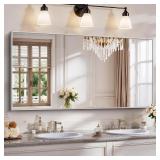 YIROMAN Bathroom Mirror 60"x30", Large Brushed Silver Bathroom Mirror for Over Sink with Aluminum Frame, Rectangular Vanity Mirror with Right Angle, Wall Mirror Hangs Horizontal or Vertical