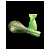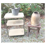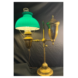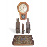 Featured lots: (2) 1952 Signed, Dated & Stenciled Toleware Trays; Rare Find Antique Tear Bottle; Rare Find Loetz Green Glass Vase w/ Alvin Sterling Silver Overlay; 14K Gold Ring with Blue Gemstone; 5g Fine Gold Bar; Brass and Glass Student Electric Lamp; Corner Hutch Cabinet; Drop Leaf Tea Cart with Serving Tray; Early 1900s Oak Barrister Bookcase Cabinet; Rare Find - Vintage '40s Enamel Table w/ Slide Out Leaves; Stained Glass Shade Table Lamp 1 of 2; Vintage Wooden Tea Cart w/ Spoked Wheels, Drop Leaves, and Lower Shelf; and more!
