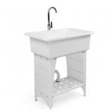 ROVSUN 32" x 22" Utility Sink Laundry Tub with Hot & Cold Faucet White