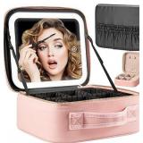 Makeup Travel Train Case with Mirror LED Light 3 Adjustable Brightness Cosmetic Bag Portable Storage Adjustable Partition Waterproof Makeup Brushes Makeup Jewelry Gift for Women