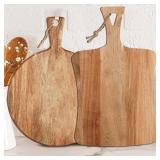 Hsei 2 Pcs Acacia Wood Cutting Board with Handle Wooden Charcuterie Board Large Paddle Carving Chopping Set Butter Serving Tray for Cheese Meat Fruit Pizza Bread Baking(Practical Handle)DE