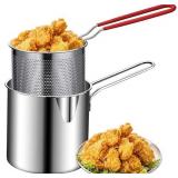 Deep Fryer Pot with Basket, 2Pcs Set Deep Fryer Pan Stainless Steel Chip Pan with Handle Uncoated Mirror Polished Brushed Frying Pots for French Fries Chicken Wings