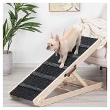 Dog Ramp for Bed - Foldable Small to Large Dog Ramp for Couch - 6 Adjustable Height from 12" to 24" - Stairs with High Traction Mat - Wooden Portable Ramp for Dogs to Get on Bed Couch Car Up to 200LBS