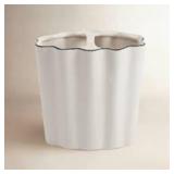 Crafted from porcelain and featuring an unconventional but elegant scalloped design, this bath accessory collection will bring texture and highlight your bathroom decor. At the top of each piece, there is a black-trim detail that will spotlight the scallop shape of this marvelous accessory set.