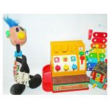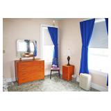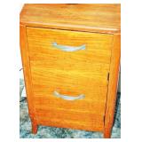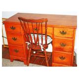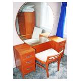 FURNITURE: 5-Piece Blonde Bedroom Suite (Double Bed, Chest Of Drawers, Vanity & Stool, Dresser w/ Mirror, Nitestand), Painted Three (3) Drawer Low Drysink w/ Two (2) Panel Doors, Carl Schirmer Boston Upright Painted Player Piano, Ornate Fancy Upright Wilcox & White Conn. Organ, Needlepoint Stool, Maple Kneehole Desk, Multi-Drawer Chest Of Drawers, Wooden School Desk, Wooden Bookshelf, Modern Bookcase, Gooseneck Rocker, Glider-Rocker w/ Ottoman, Filing Cabinets, Wooden Picnic Table & Benches, Gas Grill, Other Items