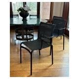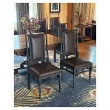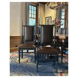Set of Twenty Custom Dining Chairs with expertly crafted with cerused oak frames, black finish with white grain accent, that are wrapped in premium black leather with classic nailhead trim.