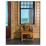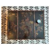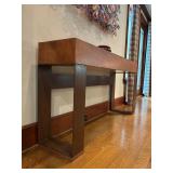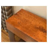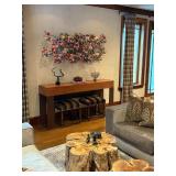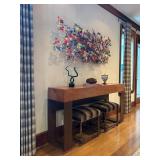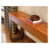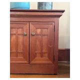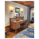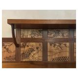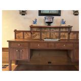 A monumental sideboard that blends American Arts & Crafts soul with Japanese-inspired elegance. Crafted from rich walnut, it features exposed butterfly joinery and a stunning, hand-etched wood-burning artwork of peacocks and flowering branches across the backsplash.