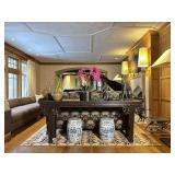 Ceramics from Chinese Export porcelain, Knabstrup (Danish), Edwardian Lovatt Langley Ware jardinieres, hand-painted Italian serving trays from Ravello.