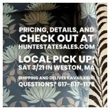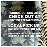 Need delivery? Shipping? Want to check it out in person before buying? No problem! Contact us at 617-817-1178 or info@huntestatesales.com