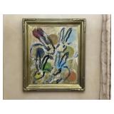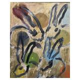 A signature spiritual self-portrait from the artist’s celebrated morning warm up ritual painting rabbits. Housed in a hand-selected antique 19th-century gilt wood frame from the artist’s private collection.
