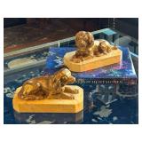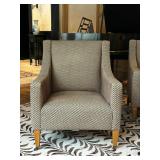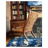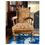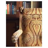 Lions’ head decorated armchairs with a modern tapestry upholstery