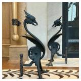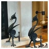 American Asethetic Movement Cast Iron Phoenix Andirons Attributed to Bradley & Hubbard with articulated talons, legs and crest, these literally rise from the ashes. BOTH the Smithsonian Institute and The MET have this set in their