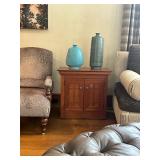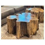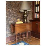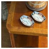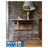 French Empire style stands featuring a satinwood string inlay, burl wood banding