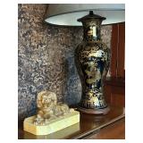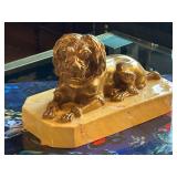 Pure Art Deco. A 12" globe perched on a heavy cast-iron stand with signature lion-paw feet. A Boston-born classic.
