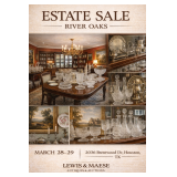 River Oaks Traditional Antiques Estate Sale March 28 and 29 Hosted by Lewis & Maese Antiques & Auctions River Oaks | Houston WATCH THE ONLINE VIDEO WALKTHROUGH AT: AND https://www.facebook.com/FineArtAuction/videos/2013110096309569 Step inside one of Houston's most prestigious neighborhoods and discover a classic, traditional estate filled wall to wall with antiques, collectibles, and timeless treasures. This River Oaks home is absolutely packed with thousands of quality pieces, offering something special for collectors, decorators, and treasure hunters alike. What You'll Find